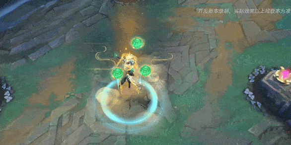 作为辛德拉的核心输出与叠被动技能,一技能的特效设计堪称点睛之笔。基础形态下,辛德拉抬手抛出一枚绿色莲花造型的法球,落地瞬间炸开一圈金色光晕,仿佛莲花初绽,简洁却不失细节;当叠加3层被动触发强化后,法球体积明显增大,落地炸开时会绽放出一朵完整的金色莲花,伴随更浓郁的绿色烟雾扩散,视觉冲击力直接拉满。值得一提的是,技能释放时辛德拉会伴随轻微的旋转动作,配合法球的莲花造型,让每一次施法都极具观赏性,完美契合“春晖神裔”的主题。