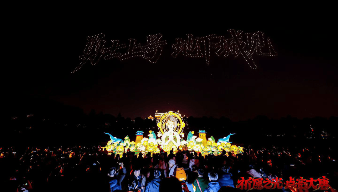 1月17日,西安大唐芙蓉园的曲江池畔立起了一座长达35米的赛丽亚巨型花灯,到场的玩家把自己的新年祝福签绑在河灯上,顺流漂送而下,在一众仿唐建筑群跟前拍照留念,和诸多游戏NPC们一起许下了新年的愿望……