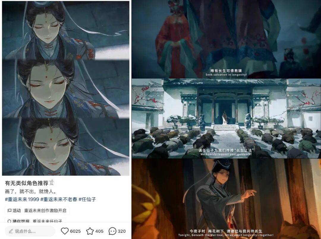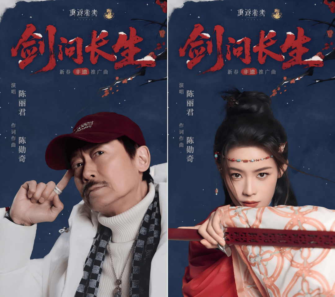与陈勋奇(中国香港传奇音乐人、资深导演)、陈丽君(青年艺术家、越剧演员)合作的新春曲目《剑问长生》,则让不少玩家感叹「9你出息了」;