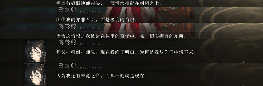 鹭鸶剪在最后一刻折断长生剑,意识到困住自己的并非如石头般停滞的感知,而是极度的悔恨。解开心结后,她不再纠结,并表示不论来多少遍,结局都不会改变。