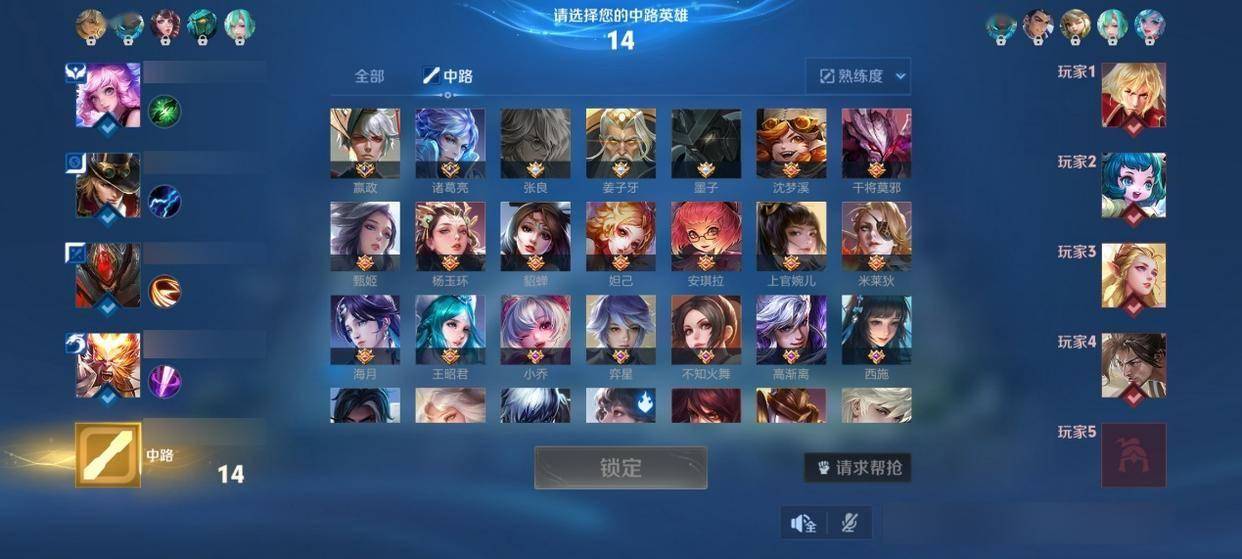 这篇文章我们补位辅助,我方阵容选出来的英雄比较少,但是搭配还不错。我们再看敌方阵容,就是两个刺客,一个任性大王,我方的后排还没有出,我们也不知道他好不好保。
