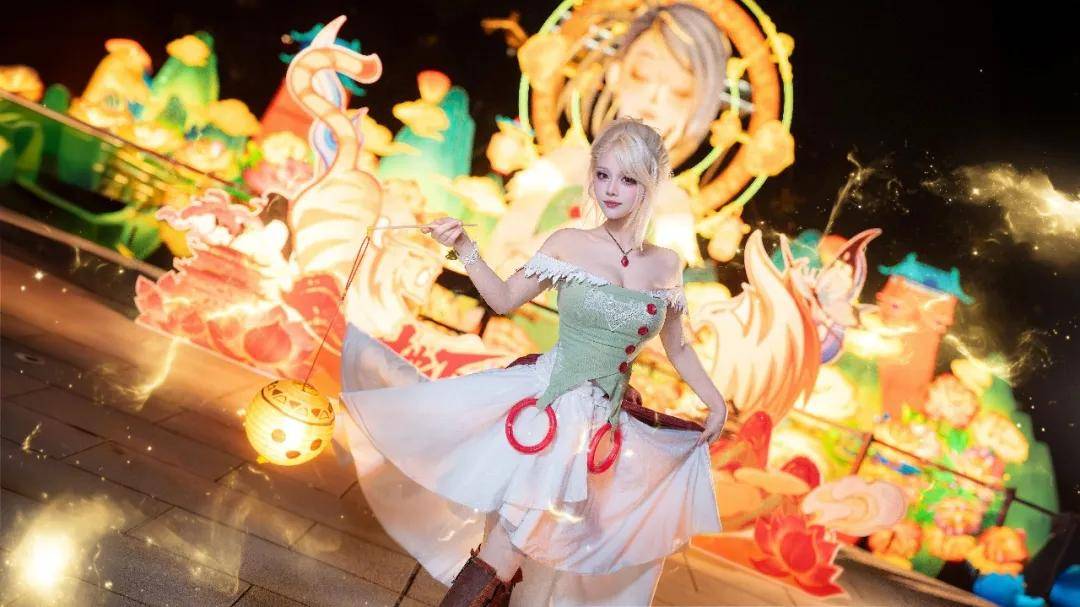 解卅举了个例子,赛丽亚是DNF IP最具代表性的人物形象,深渊祈愿闪光也是游戏的主要玩法,落到大唐芙蓉园场景中刚刚匹配了“上元夜长安灯会”的节点。当巨型赛丽亚花灯在此以许愿的形象亮起,无人机演绎赛丽亚祈愿合拢双手动作,是现场玩家最嗨的一幕。