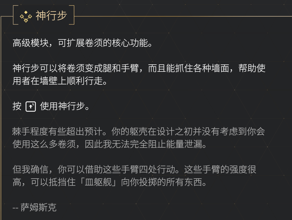 不过,虽然大部分系统设计得都较为常规,但“神行步”这个能力的设计,却颇为亮眼。这是一个可以让玩家在绝大部分地形上“爬行”的能力,只有一定的时间限制。在游戏中期获得这个能力后,玩家对这个世界的探索程度会有质的飞跃,基本上只要找到合适的方法和角度,这个世界的绝大部分地形都能凭借这个能力跨越过去。