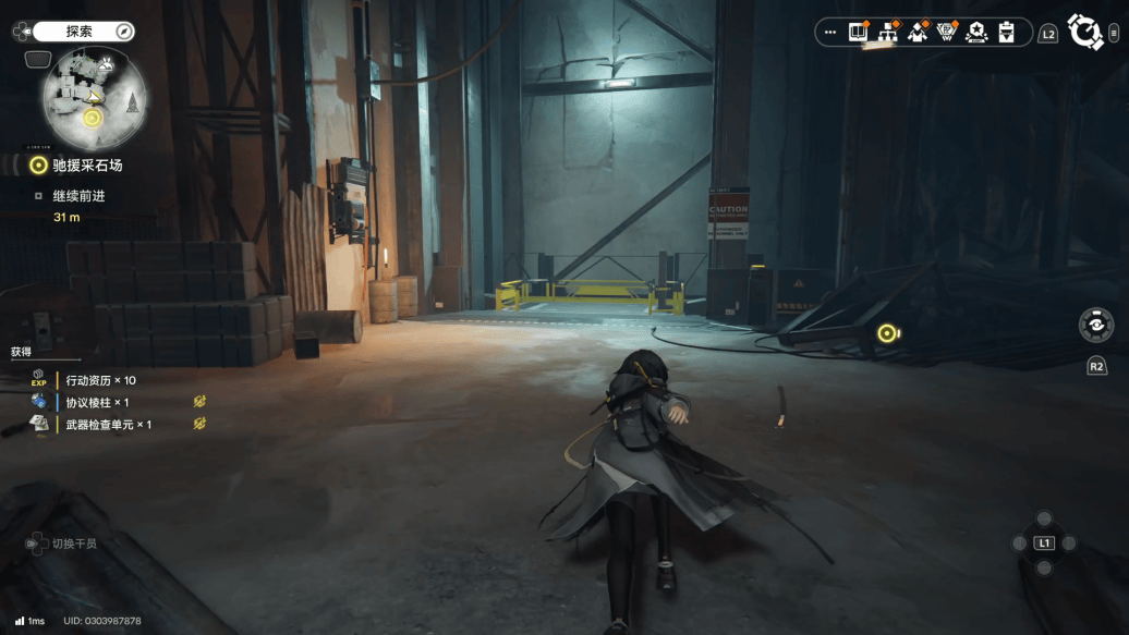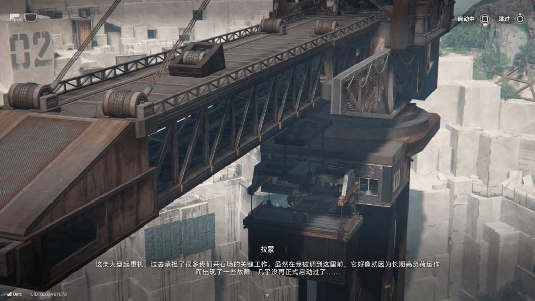 整张采石场地图被一座巨型起重机连接。它是进入采石场后看到的视觉锚点,是任务开始的出发点,也是沟通几个区域的桥梁。而围绕着起重机,又有横向与纵向两条动线的交织——二者均为环状结构,走一圈便会回到原点。