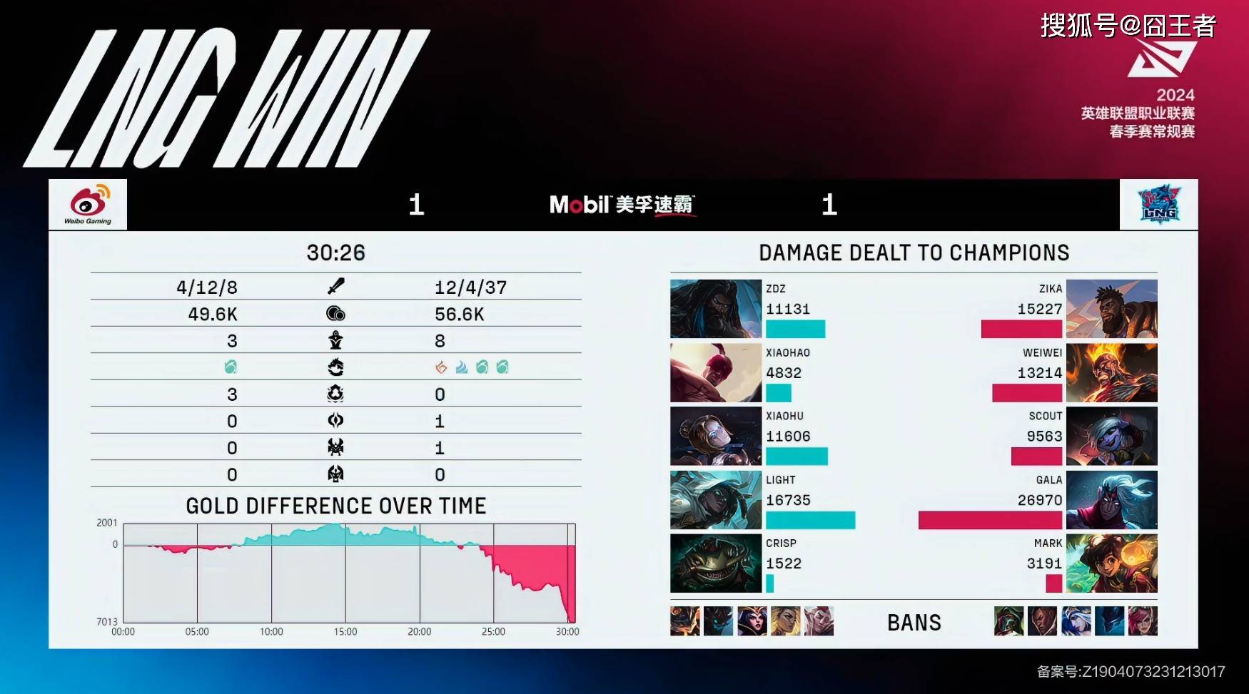 结果两队在第二局比赛中,又打出了反转局。前期WBG利用前期优势,在前20分钟,打出了2000的经济优势。然而进入中后期,LNG双AD阵容开始发力,23分钟左右的小龙团中,LNG大获全胜后斩获大龙。最终由于WBG在后期的伤害完全不足,LNG30分26秒,拿下水龙魂后,轻松碾压扳平比赛!