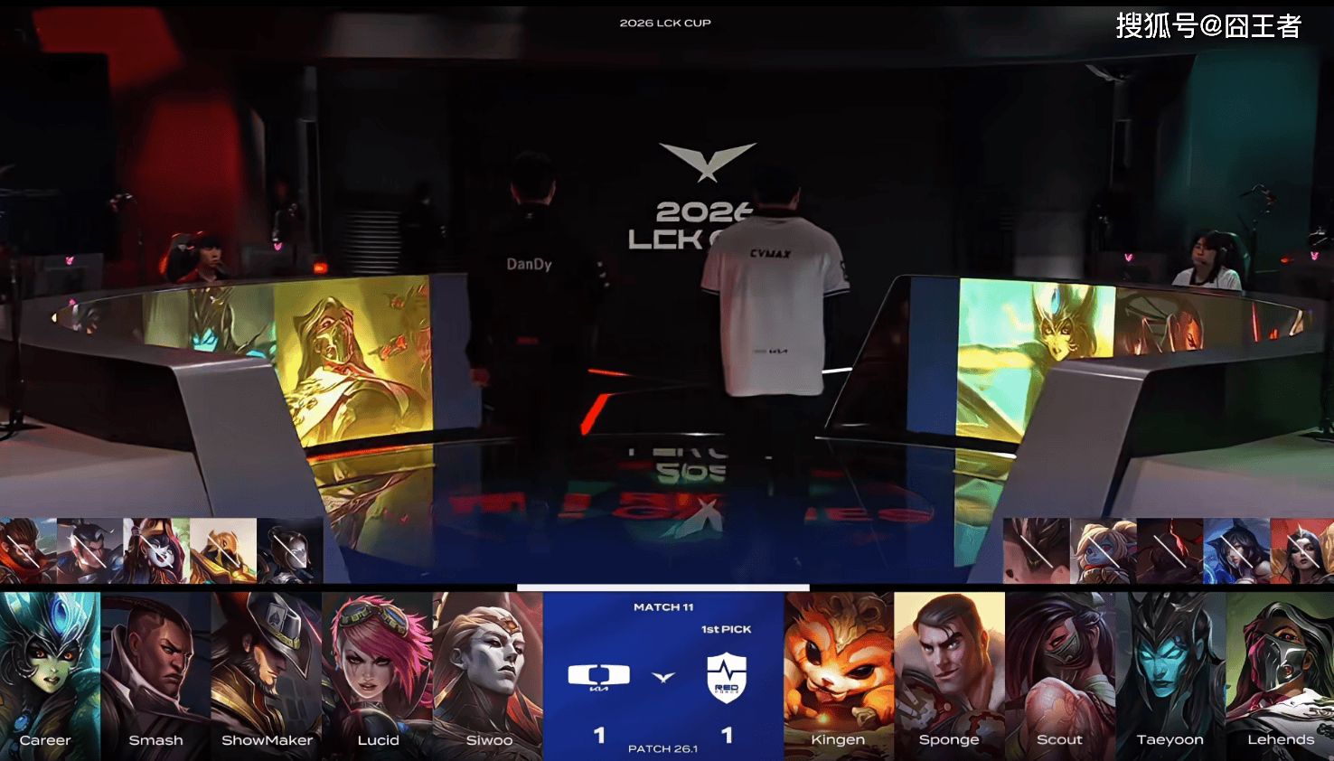 第一局比赛,D K蓝色方,禁用:发条、沙皇、杰斯、泰坦、韦鲁斯,选用:Siwoo奎桑提、Lucid皇子、ShowMaker瑞兹、Smash希维尔、Career巴德;N S红色方,禁用:石头人、芸阿娜、蔚、卢锡安、卡尔玛,选用:Kingen兰博、Sponge潘森、Scout岩雀、Taeyoon伊泽瑞尔、Lehends妮蔻