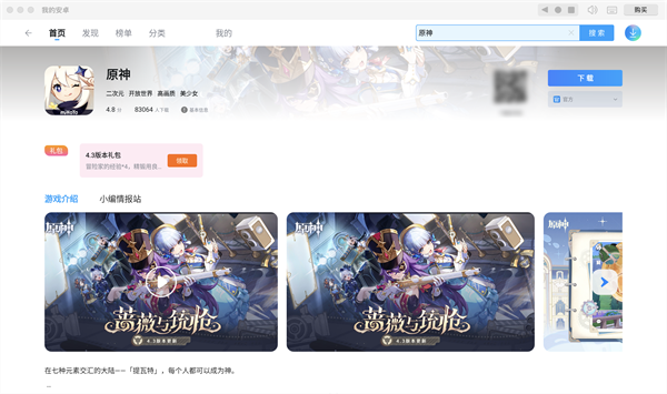 第四步:在模拟器游戏中心内,搜索【原神】就可以找到并安装该游戏了。