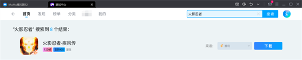 第三步:搜索【火影忍者】就可以找到该游戏了。