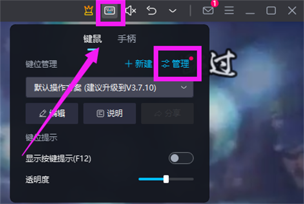 第六步:启动游戏后,点击右上角的“小键盘”进入按键管理界面。