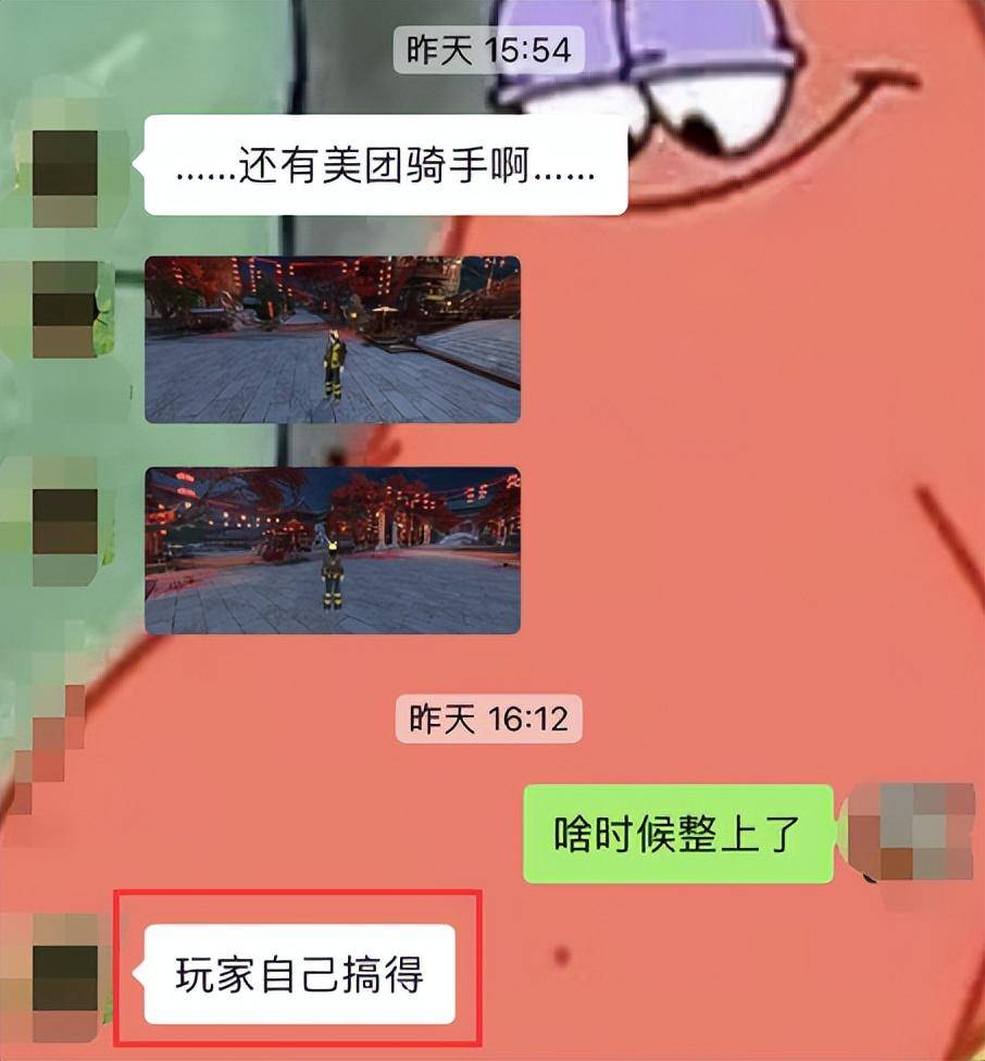 细心观察的玩家们一定会发现,画面中还出现了美团外卖的身影。这并不是游戏与美团外卖的合作,而是玩家们的染色设计作品哦~
