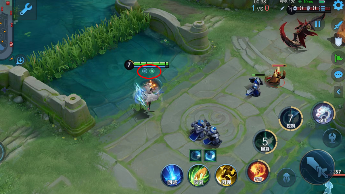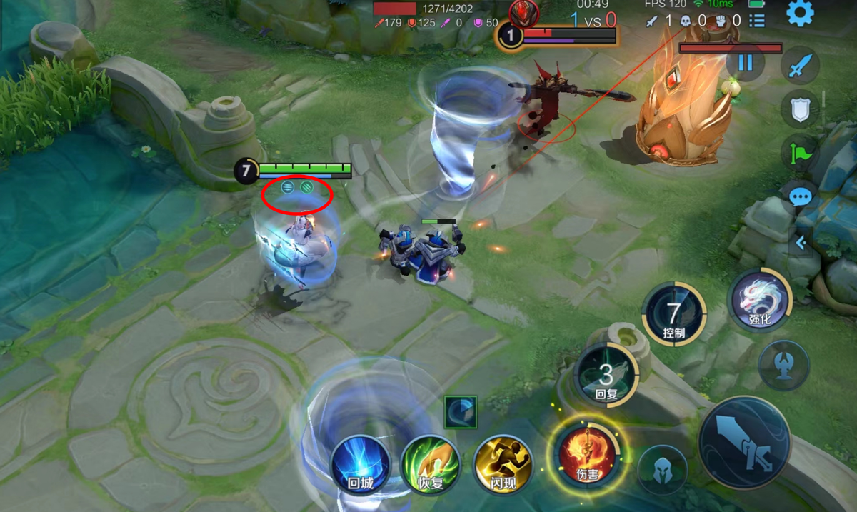 看到这里大家应该明白了敖隐的被动,他的被动最多叠加两层印记,也就是说你能释放两次一技能,这样就能获得双倍普攻伤害;你也能释放一次一技能,外加一次二技能,这样你既有一技能的伤害,还有二技能的回复,一次普攻就能获得这两个效果。搞明白了敖隐的输出模式,你就能玩明白这个英雄,他没有具体的连招,攻击方式就是普攻,需要什么效果,就使用什么技能即可。