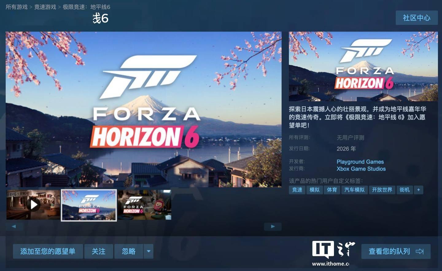 IT之家 1 月 22 日消息,外媒 dealabs 现已曝光《极限竞速:地平线 6》将于 2026 年 5 月 19 日发售,购买高级版的玩家将获得 4 天的抢先体验资格(5 月 15 日可玩)。