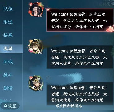 没错,就是碧血营的血河和铁衣,直接在流派频道里面互相锤了对方,战况很激烈啊!具体情况看下图: