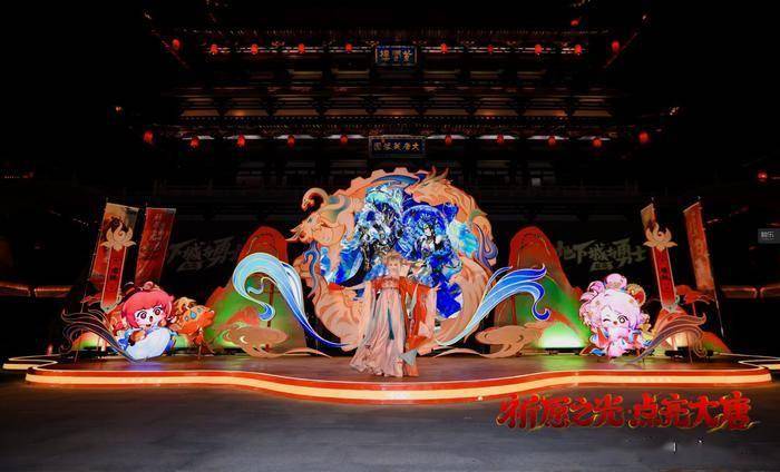 “祈愿之光·点亮大唐”活动由DNF手游与大唐芙蓉园合作打造,是西安市推动文旅产业数字化升级的重点项目。从现场的直接观感来说,这其实很像是一场跨界游园会——可以在祈愿树下写下心愿,挂上树枝;有投壶、对诗之类的互动玩法,非遗摊位可以做DNF手游元素的糖画、皮影还有剪纸;赛丽亚换上了汉服,索西雅玩着酒碗“叠叠乐”,风拳流大师风振在和玩家现场对弈。