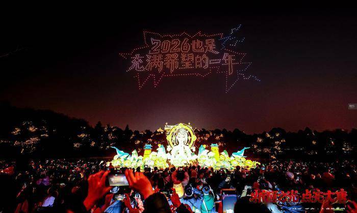换句话说,任何人都会被这次活动所营造出的特殊氛围所打动。游戏始终在以更加丰富、触手可及的形式出现在我们的生活中。当8点钟点亮仪式开始,无人机在空中变换,交替摆出天帷巨兽、时空之门等游戏元素符号,当无人机阵摆出“2026也是充满希望的一年”时——玩家们的情感共鸣也达到了顶点,感染到周围的游客,所有人都一起举起手机,记录下这一幕。