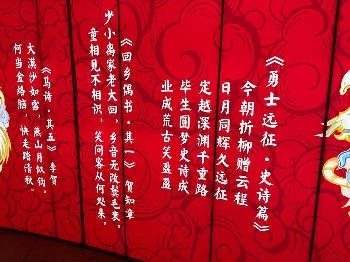 我到达的时候,亮灯仪式还未开始,主舞台的表演正在进行,人群在这里聚集起来。周边的很多布置也都有让人会心一笑的设计,比如附近的诗词墙——仔细在里面寻找,可以发现有DNF元素的藏头诗混入其中。现场的互动摊位面向所有游客,只要一些轻松、简单、有趣的互动就可以获得兑换券,不少人手里提着土罐的小灯笼,大家看起来都相当开心。整个园内都有一种临近春节特有的喜气洋洋的氛围。