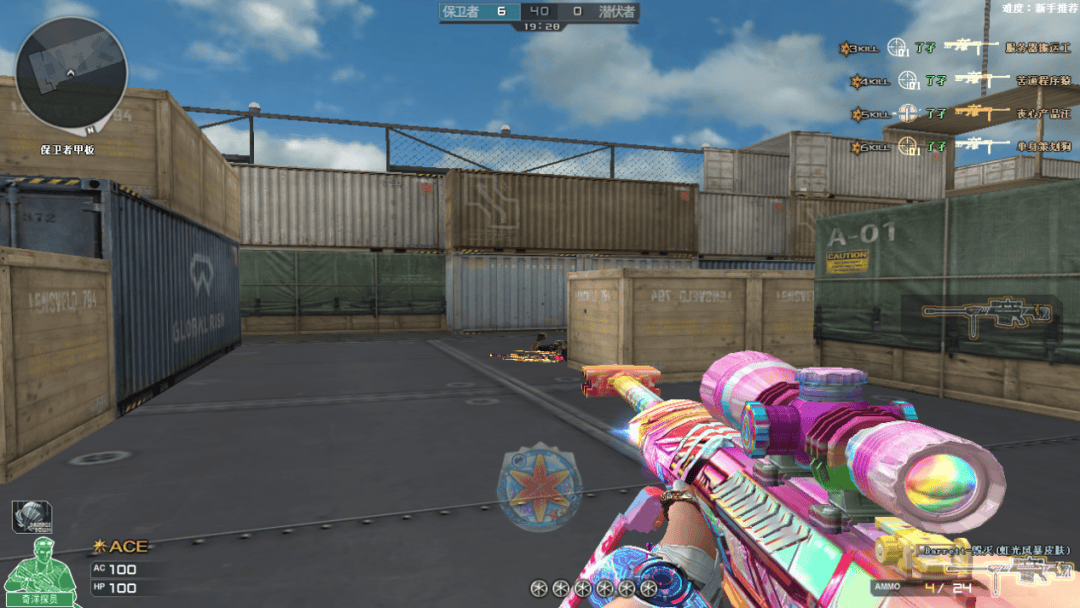 除了皮肤外观极具特点之外,虹光风暴的瞄准镜设计也是相当的精美。独有“猛男”配色加上毁灭自带的毁灭视野,整体呈现的依旧是一种甜美的糖果风,这种配色风格可以说是斩男又斩女,深受玩家们的喜爱。