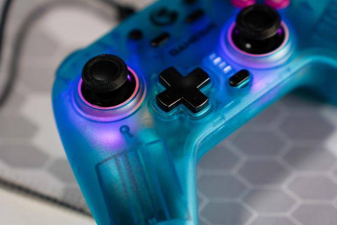 在硬件配置上,启明星可谓是一应俱全,它配备了最新的Gamesir专属算法的霍尔摇杆,79.9元的低价,竟然有双霍尔摇杆,采用了pom材质,更耐磨、更顺滑,这类摇杆可以从根源上杜绝漂移,寿命长达三百万次,具有卓越的耐久性。这意味着即使在长时间的游戏过程中摇杆也能保持稳定性能与精准控制特性,从而让玩家能够更好地沉浸在游戏世界中。ABXY按键为百万次手柄导电胶,采用G7 SE独创的混合式支撑结构,防止塌陷,大幅度延长寿命,类原装双色注塑工艺,杜绝磨损。