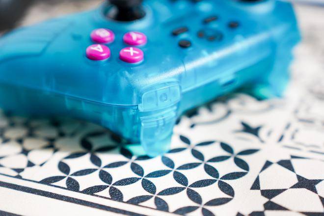 整体按压手感比较柔和适中,回弹有力,有清晰的段落感,在我看来是非常舒服的。十字键按起来也很有段落感,反馈比较强,不绵软。肩键也使用了导电胶,但是触感更狂野一些。此外,搭配的PS5同级碳膜线性扳机,快弹力硅胶加上弹簧公益,提供了快速响应和精确控制,使玩家在游戏中能够得到更好的发挥。