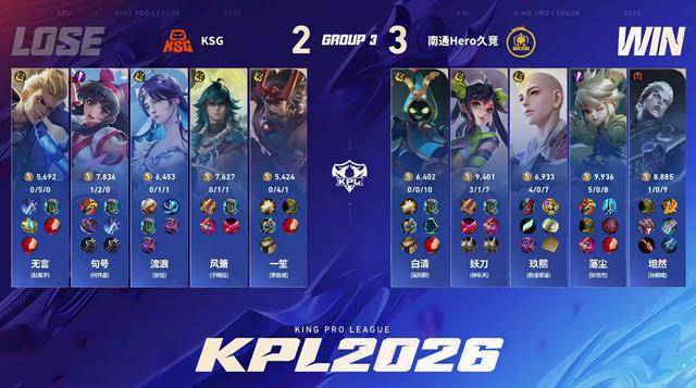 Hero拿到优势之后打得非常稳,KSG11分钟落后八千经济,最终2-3输给了hero。