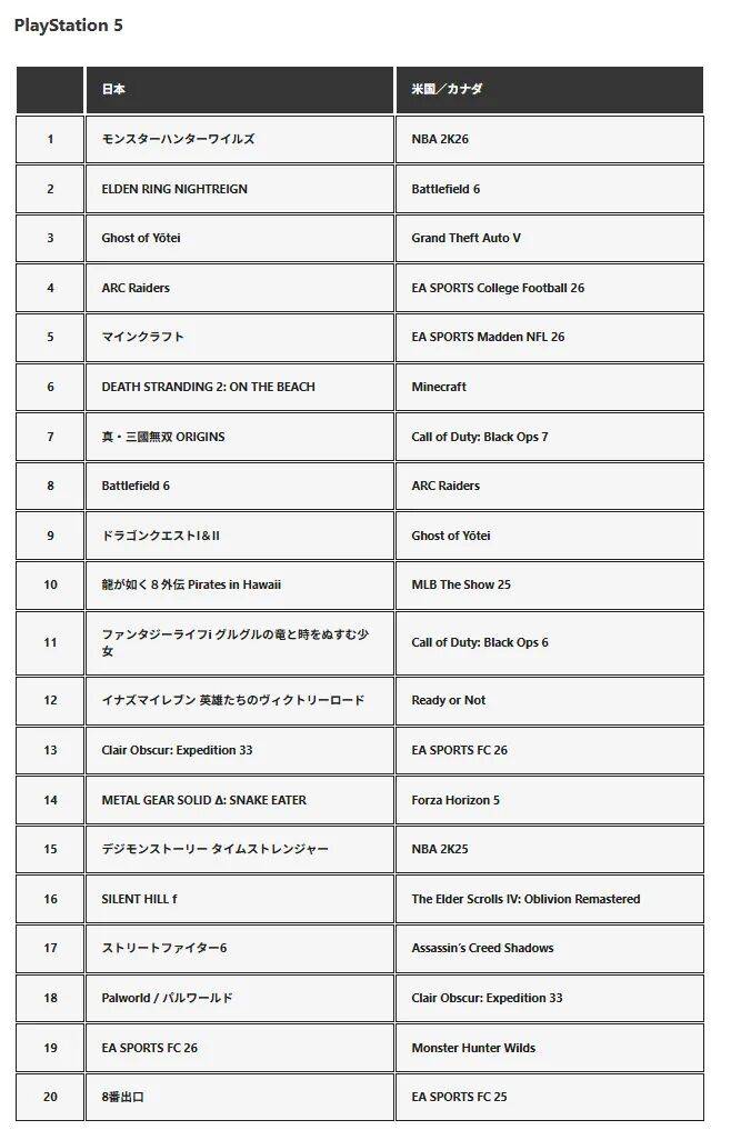 从上述排行可以看到,在美国和加拿大地区,体育游戏依然是占据了市场大头,而在日本市场则主要以ARPG或者是MMO类型的游戏为主,不过射击类型游戏在这两个市场上都有着非常不错的表现,特别是ARC Raiders,分析机构 Alinea Analytics 称,Arc Raiders自发售以来,短短两个多月的时间里销量就突破了 1200 万份。1 月 4 日,该游戏的日活跃用户数创下历史新高,单日在线玩家超过 320 万人。
