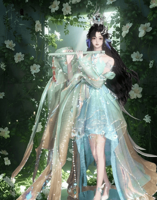 青绿色的则给人一种清新怡人的感觉。这种颜色仿佛让人置身于森林之中,感受大自然的气息,清爽而脱俗。穿上这套时装,你便是那林中的精灵,带着一丝神秘与优雅,令人心生向往。