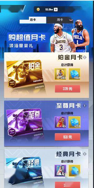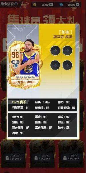 铂金月卡包40抽必出金卡球员,240抽必出90-94铂金卡球员!