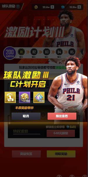 当您的球队等级达到110级时,解锁C计划后您可以获得:94-97铂金卡自选卡*1+升级币*5000+突破币*500
