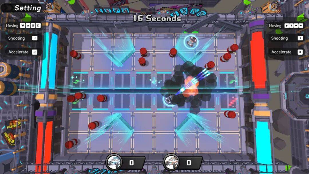 在有限回合的激战中,驾驶你的战争机器碾碎一切!《暴力战车》是一款专为双人同屏对抗打造的快节奏动作射击游戏,操作你的专属战车,每次击杀都能积累胜势,最终积分霸主加冕为王。