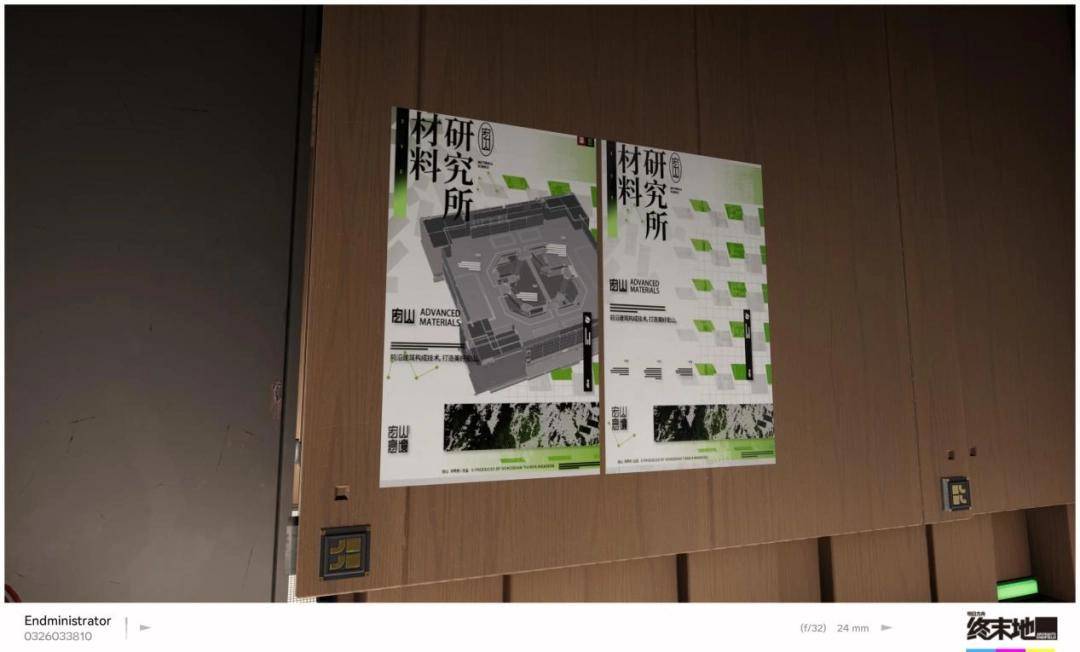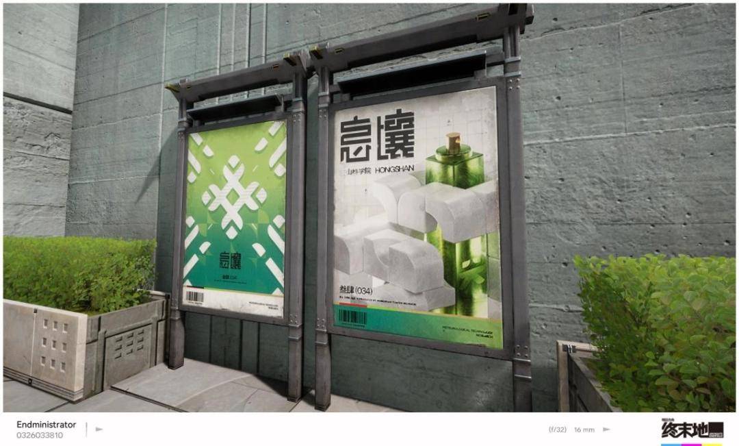 而话又说回来,这种让平面设计师看完当场复活的表现,当然不止这一处。在《明日方舟:终末地》里,无论是作为背景板出现的大批宣传海报,还是各路商店门头、各种指示牌,看上去都是那么规整、那么美观、那么“超现实”。