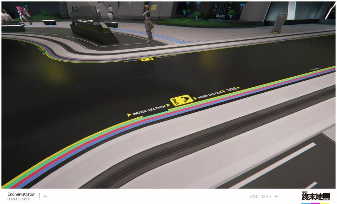 举个例子,在《明日方舟:终末地》的帝江号上,玩家能在地面上看到许多提示性的辅助线,它们以条带的形式环绕于道路两侧,指示着如舰桥、工作区等区域方位。