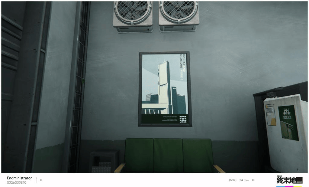 如果仔细观察这类海报的落款,你会发现它们出自一个名为“U.W.S.T”的组织,也就是“联盟工团”。在设定中,联盟工团是塔卫二上规模独一无二的巨型工人自治团体,并在建设中起到了相当大的作用——于是,你就能从他们的美术表现中看出粗粝的一面。