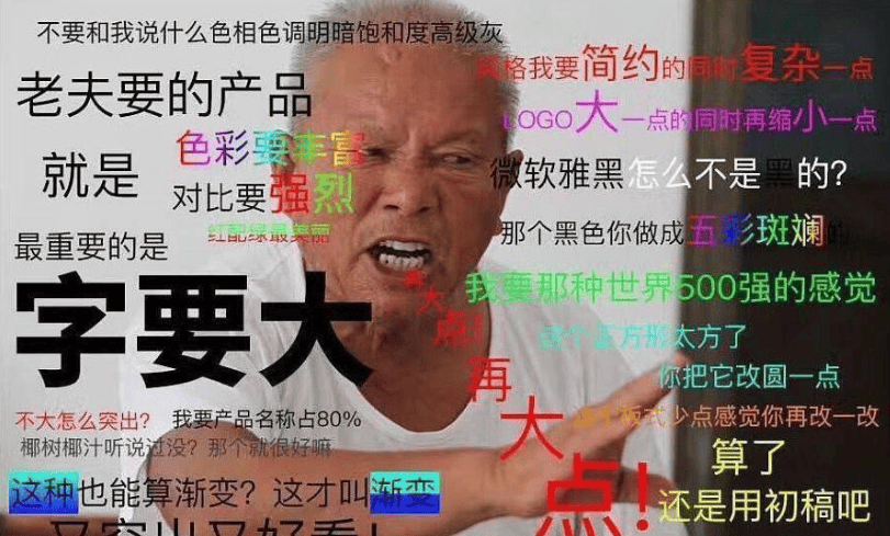 要是把同样的设计稿放到现实里,甲方八成会这样跟你说:“字太小,大一点显得大气;背景太素,没有拼搏感;我在网上看其他人都有黄金笔刷,你也整一个;人呢?我一堆学生呢?都给我贴上去!”
