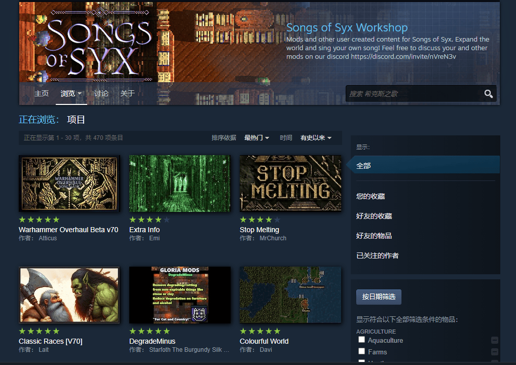 《希克斯之歌》也不例外,Steam上,《希克斯之歌》的创意工坊内已经有了470个项目,包含优化包、功能包、世界包、美术扩展包等等,你甚至可以为游戏添加二次元萌萌哒种族的美化包……