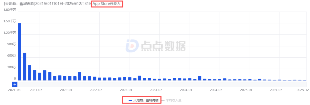 然而这两年的“折腾”并没有在产品层面出现成果,反而是2021年3月其再战战旗赛道推出的《天地劫:幽城再临》获得亮眼成绩,首月国内iOS端流水高达1.35亿,同年8月开始出海,但该作的长线能力并没有《梦幻模拟战》强劲,公测七个月后其iOS月流水便已经不足千万,2025年国内iOS端年流水更是降至1700万元(目前国内iOS端月流水不足100万)。同年紫龙还代理发行过一款来自韩国的卡牌二游《异界事务所》,但无论是国内还是海外成绩都一般(首月国内iOS端流水仅为620万),目前该作已经停运。