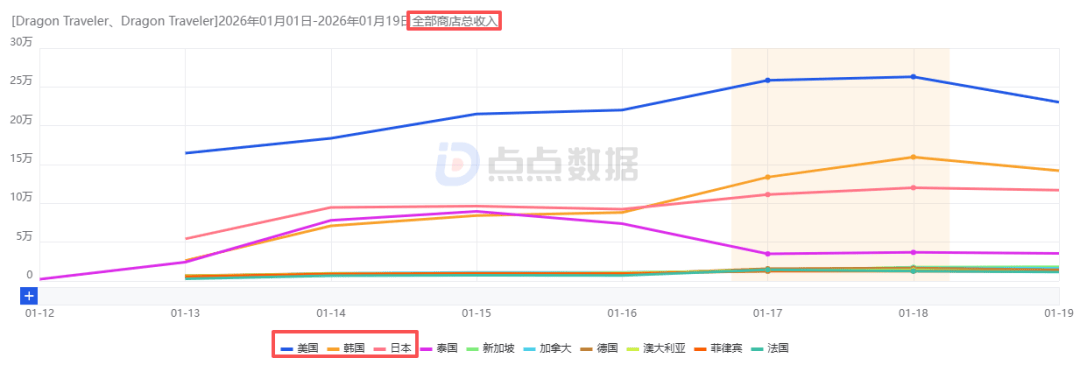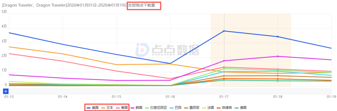 点点数据显示,《龙魂旅人》榜单表现还算扎实,公测首日冲上38个区域市场iOS游戏免费榜TOP50(其中位于日本韩国以及泰国第2名,美国第6、加拿大第11、德国第24、英国第27),9个区域市场iOS游戏畅销榜TOP50。目前(1月20日)其位于3个区域市场游戏免费榜TOP50(韩国第13),10个区域市场游戏畅销榜TOP50(韩国第13、印尼第16,此外日本位于第60,美国位于第72)。