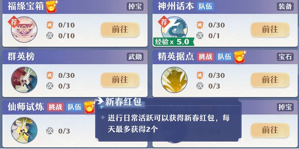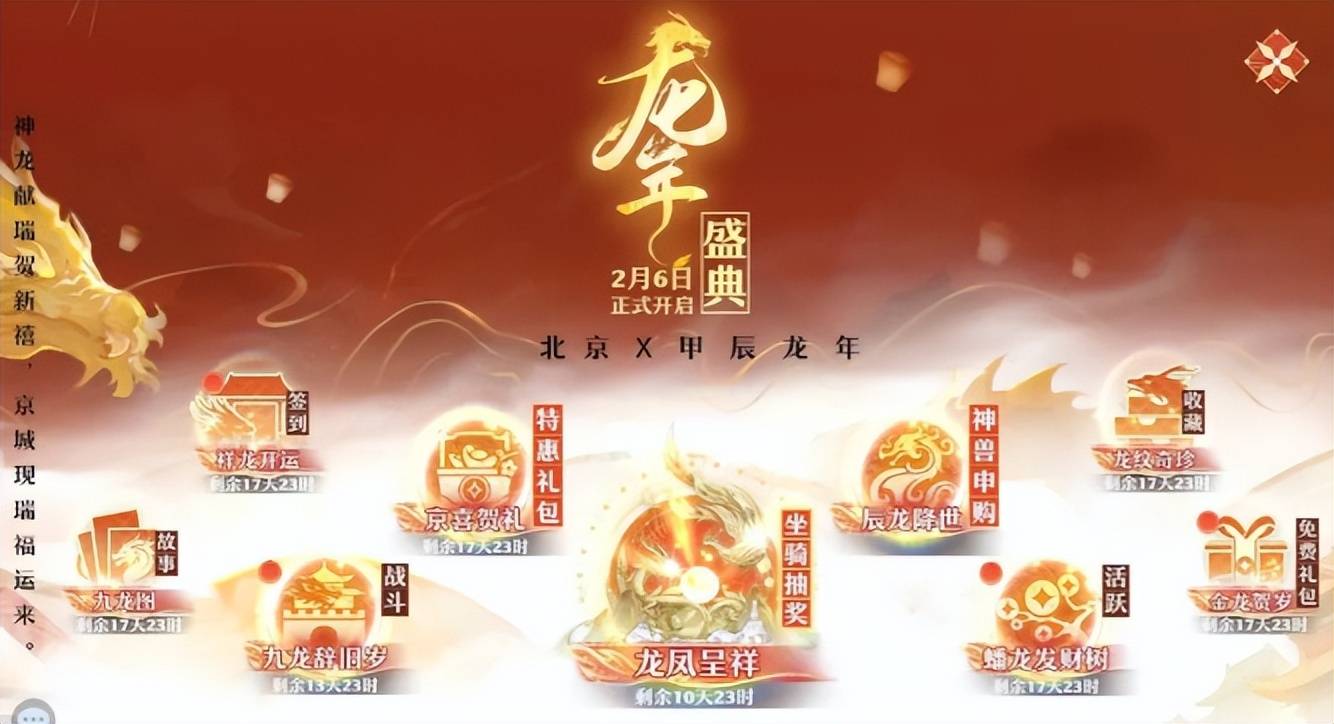 另外值得一提的是,虽然玩法看上去很多,但其实这些福利的获取难度都很低。像是“祥龙开运”和“神龙聚宝”都是登录签到即可获取,而上面提到的“新春红包”玩法,更是通过日常活动即可获取。这里提醒小伙伴一下,可不要觉得这个红包获取比较简单,所以奖励就很一般,官方可以是在这个红包里塞入了新神兽辰龙,所以千万不要错过,说不定你就是那位一发入魂的天选之人。