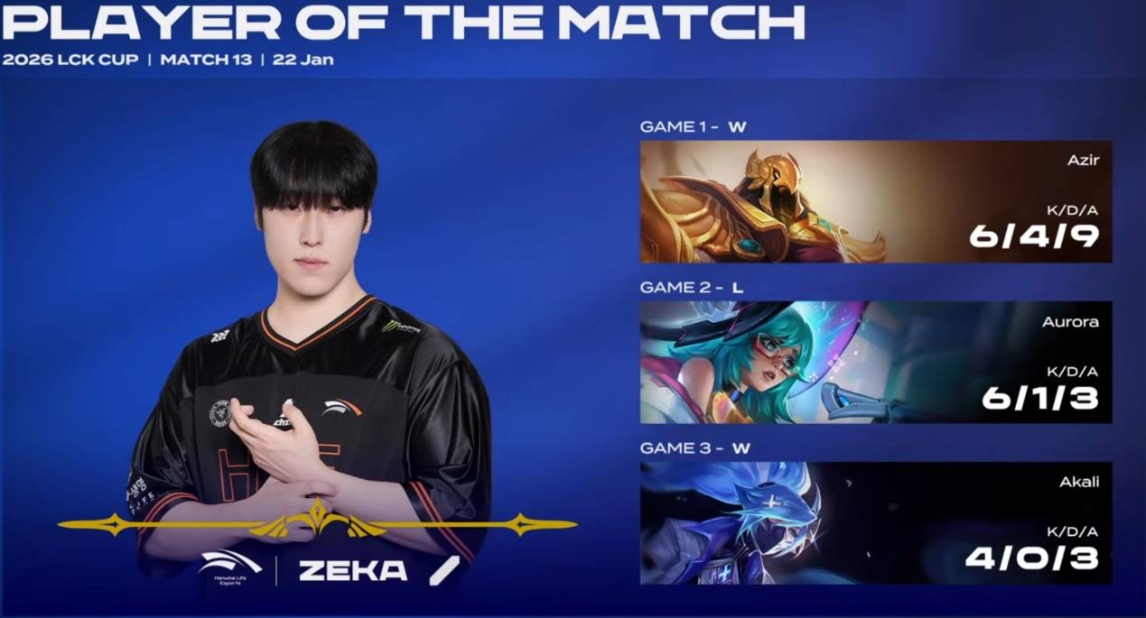 Delight招牌硬辅牛头先手抬三个,Kanavi进场后反身驾驶峡谷先锋撞两人接上控制之后,HLE一波打出团灭奠定优势后稳定滚雪球拿下比赛。