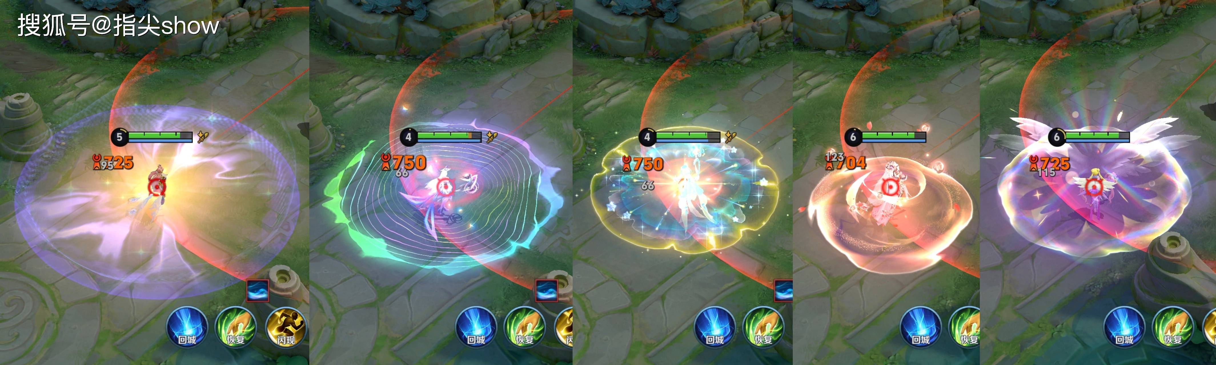 炸盾的特效都不一样,映山客做的最小,一朵花盛开的效果,乞巧织情做的最淡,但范围做的最大,长夜焕生的辨识度最高,细节做的也是最丰富的,但美少女的翅膀特效会有更精致的感觉。