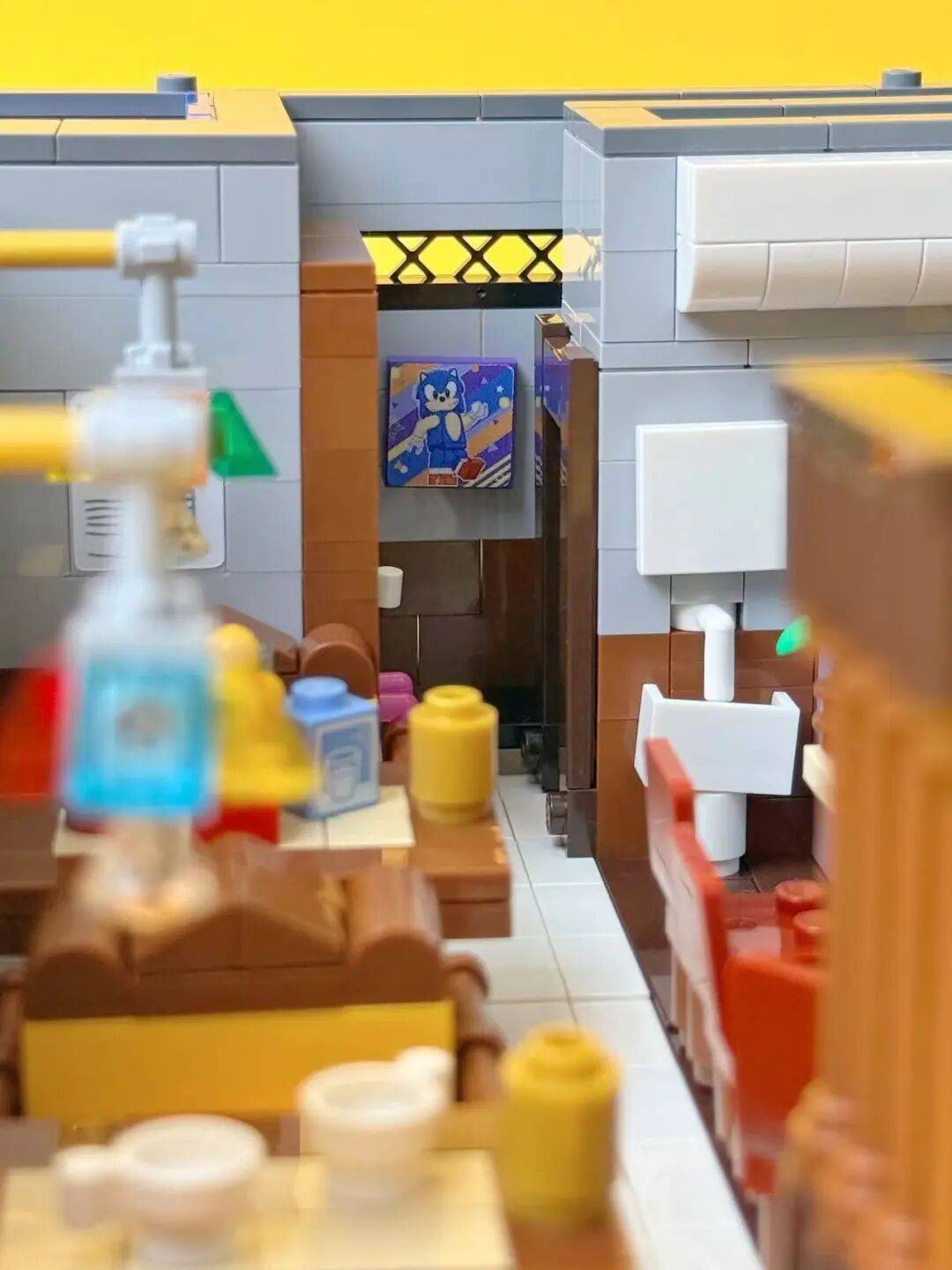 一楼尽头的墙上还有一幅索尼克的画像。刺猬索尼克同为 SEGA 的 IP,拥有独立的乐高产品线。