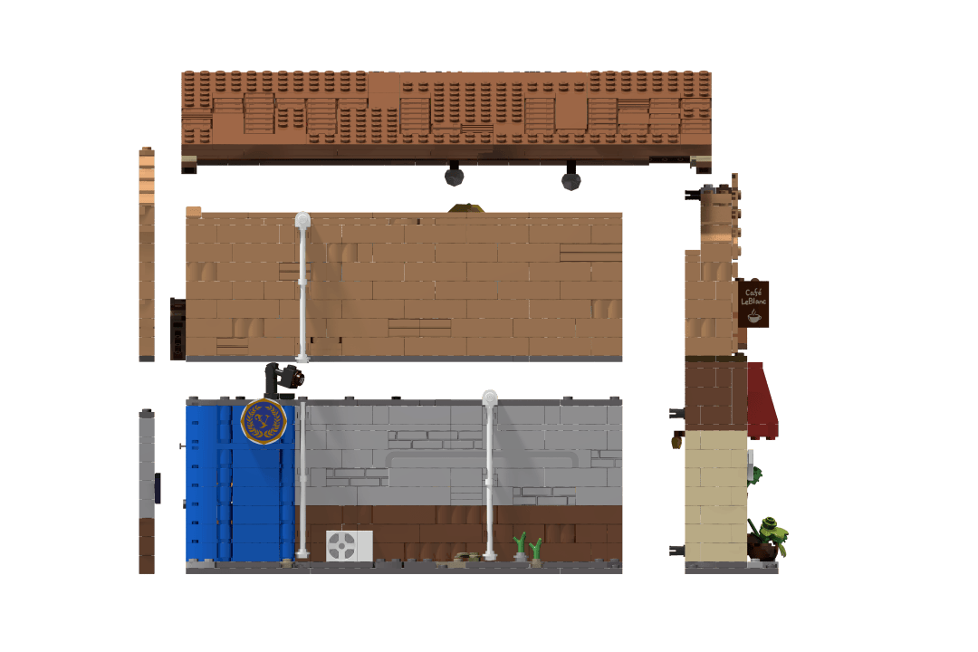 MOC 创作的过程中,我一直在探索还原度和美观度的平衡点,既要保证较高的还原度,但外观和结构也要好看、协调、稳固。整个建筑也体现了模块化的思路。虽然是全封闭,但因我个人偏好希望能清晰地看到内饰,因此门口、后墙、屋顶都为快拆结构。