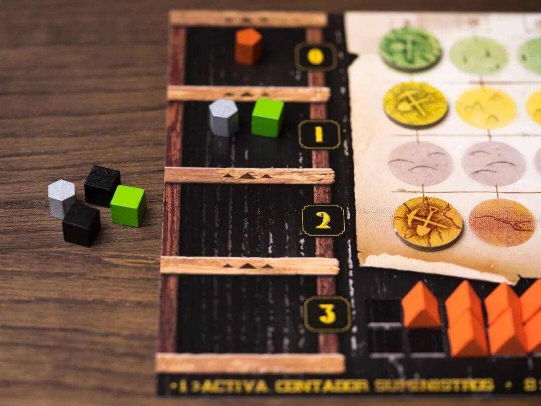 这些新的资源会存入第一步用到的供应轨中。玩家可以选择一格来放置这些资源,放置得越低,就越难取出,但相应的分数也越高。