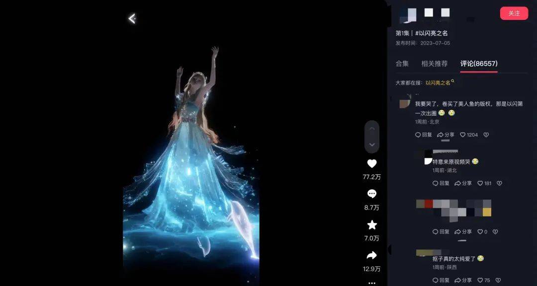这一切可以追溯到一条发布于去年7月的变装视频,那是《以闪》首次出圈,视频配乐就是林俊杰的《美人鱼》。