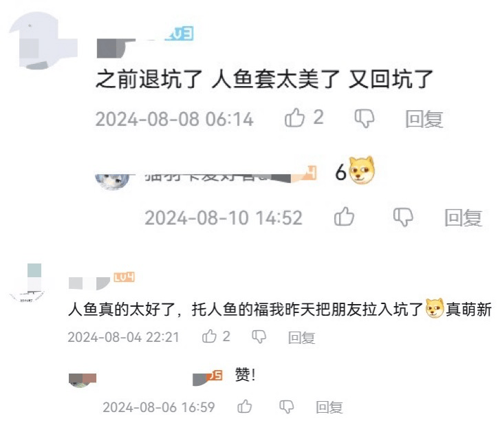 从社区评价来看,玩家们除了夸衣服好看,其实还在夸人鱼形态选择、家园互动、手书质量等等。