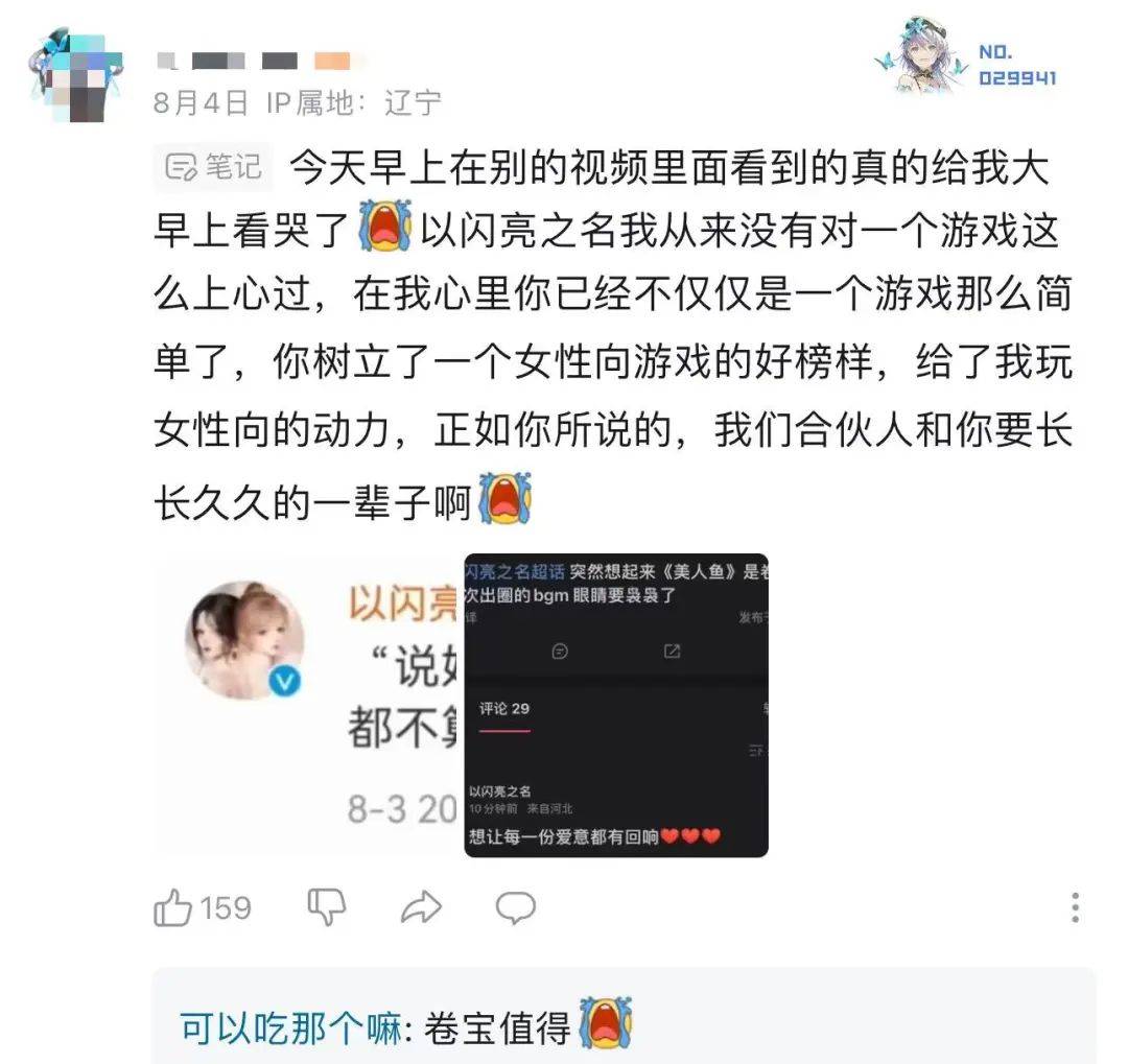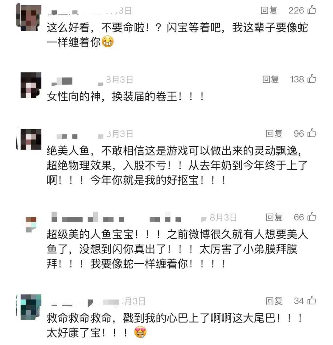 很多玩家也记得这个二创,在人鱼幻歌首曝PV的评论区提起「从去年奶到今年终于上了!」「之前微博很久就有人想要美人鱼了,没想到闪你真出了!」