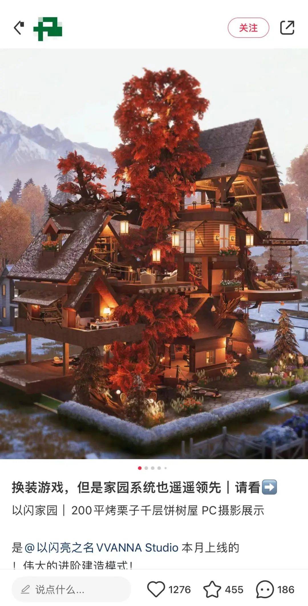 家园系统根据玩家们的需求不断完善,现在已经有玩家能搭出温暖又精美的栗子树屋。