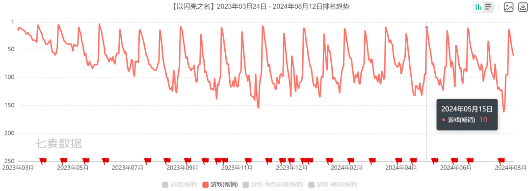 但《以闪亮之名》(下称《以闪》)并没有受到太大影响,依然多次冲进畅销榜Top 10,展现出稳定的表现。