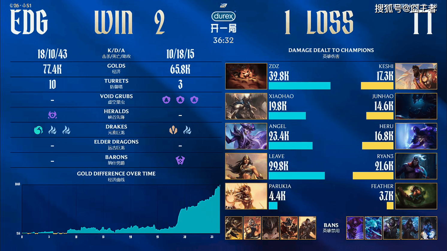 结果第二局比赛,EDG发挥了7时之约,打出了碾压局。11分钟左右:猴子gank下路击杀飞机拿到一血;12分钟左右:EDG野区抓住对方追击过深的机会击杀中野射打出一换三;21分钟左右:TT格温再次单杀对方塞恩随后阿卡丽赶到收掉残血格温;22分钟左右:妮蔻闪现大招留人卡莎大招进场击杀飞机后收掉娜美打出零换二拿下大龙;27分钟左右:EDG上路爆发团战,阿卡丽团战七进七出打出一换五拿到大龙;最终36分06秒:EDG拿下大龙团灭对手一波结束比赛