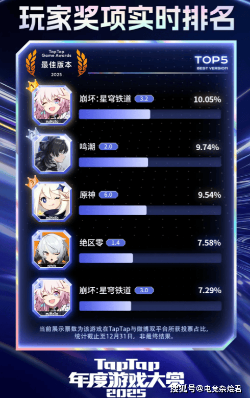 2026年到了,各大游戏平台都开始相继筹备各种年度颁奖活动,近期TapTap就放出了2025年年度游戏大赏的榜单,来自米哈游的人气游戏《崩坏:星穹铁道》几乎拿下了所有玩家投票奖项,这你敢信?