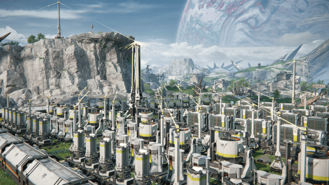 当玩家降临塔卫二星球表面后,置身外星的异乡感则更加强烈:高悬苍穹之上、占据天空近四分之一面积的巨行星不仅压迫感十足,更时刻提醒玩家正置身异星。